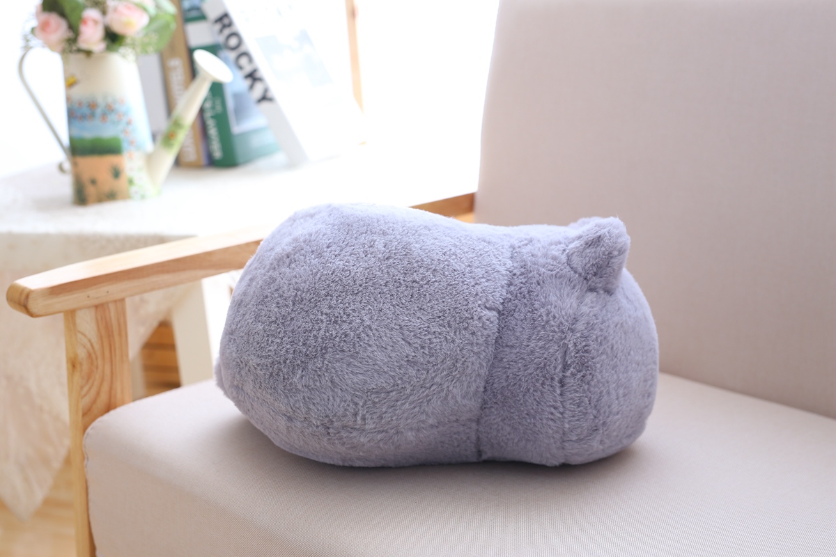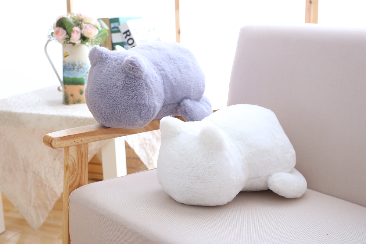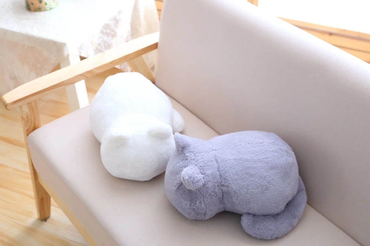 Очень хорошая игрушка-подушка под голову среднестатистического размера, котик красиво смотрится на диване, запаха нет